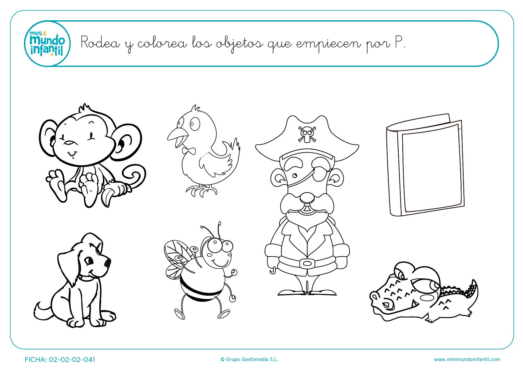 DIBUJOS INFANTILES CON LA LETRA P PARA COLOREAR